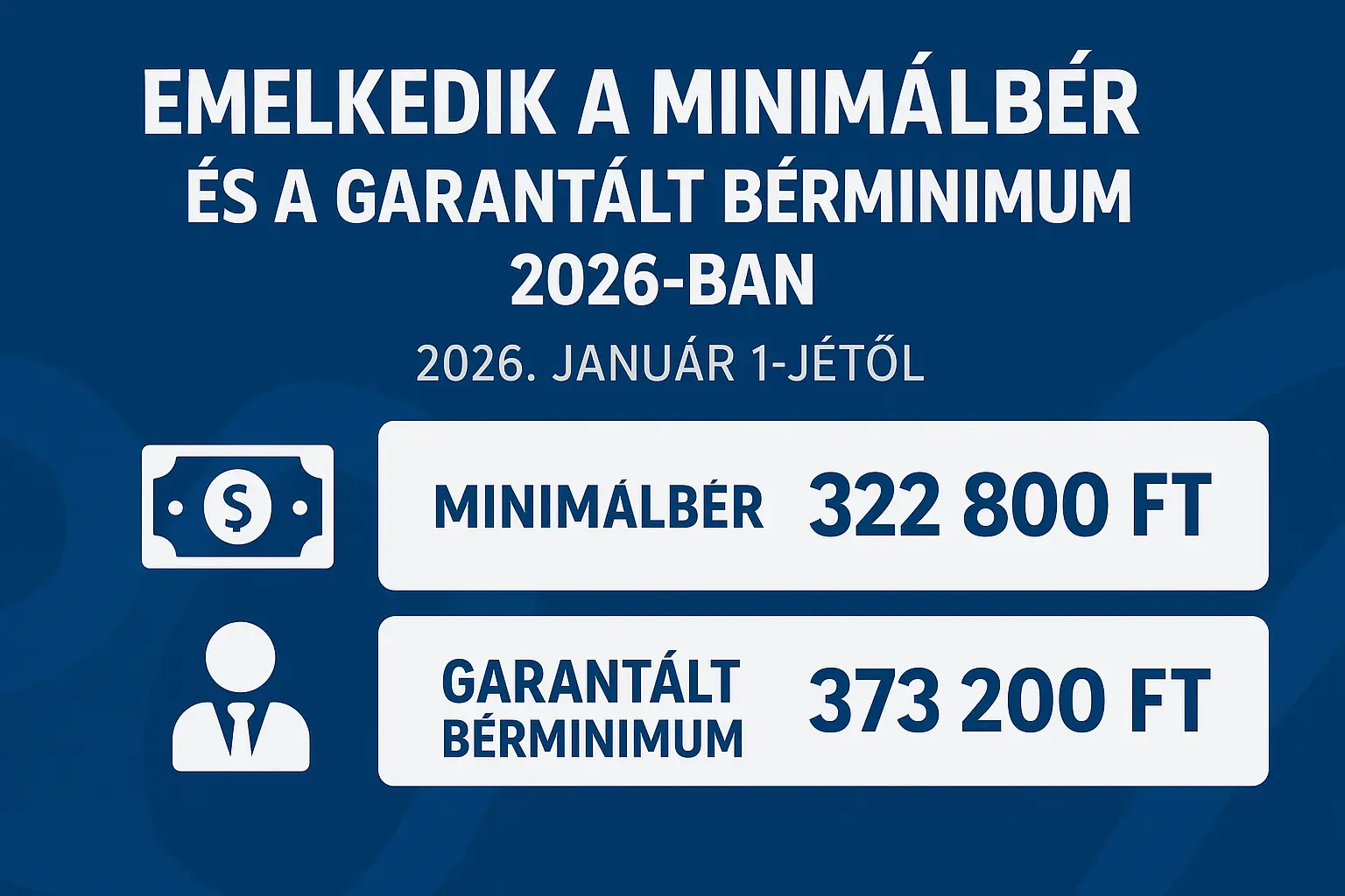 A kormány, a munkaadók és a munkavállalók megegyezésének értelmében 2026. január 1-jétől a minimálbér havi bruttó összege 11 százalékkal 322 800 forintra, a garantált bérminimumé 7 százalékkal 373 200 forintra emelkedik.